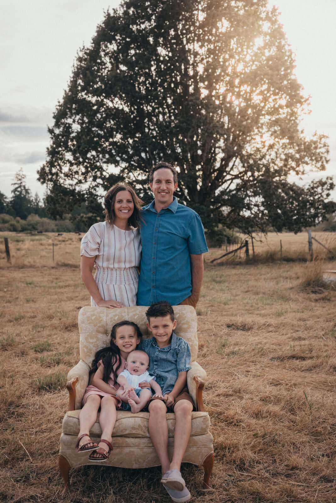 King Family! What fun we had! This amazing Lacey, WA family wanted their family photos taken at their property in Yelm. They just bought the property and are hoping to build a house on it. They wanted to get some nice outdoor golden family portraits taken to show off their newborn baby as well as their lovely land.